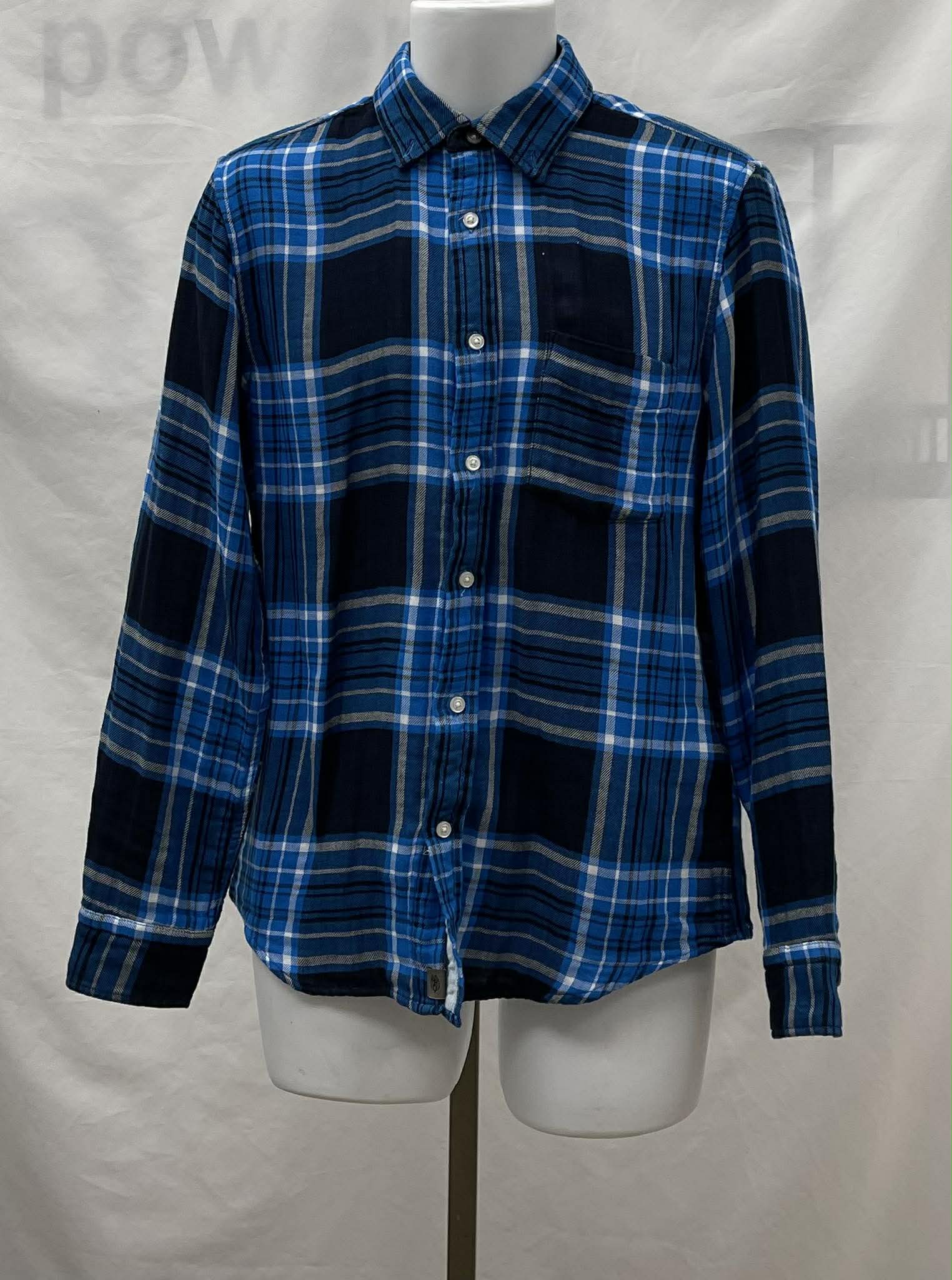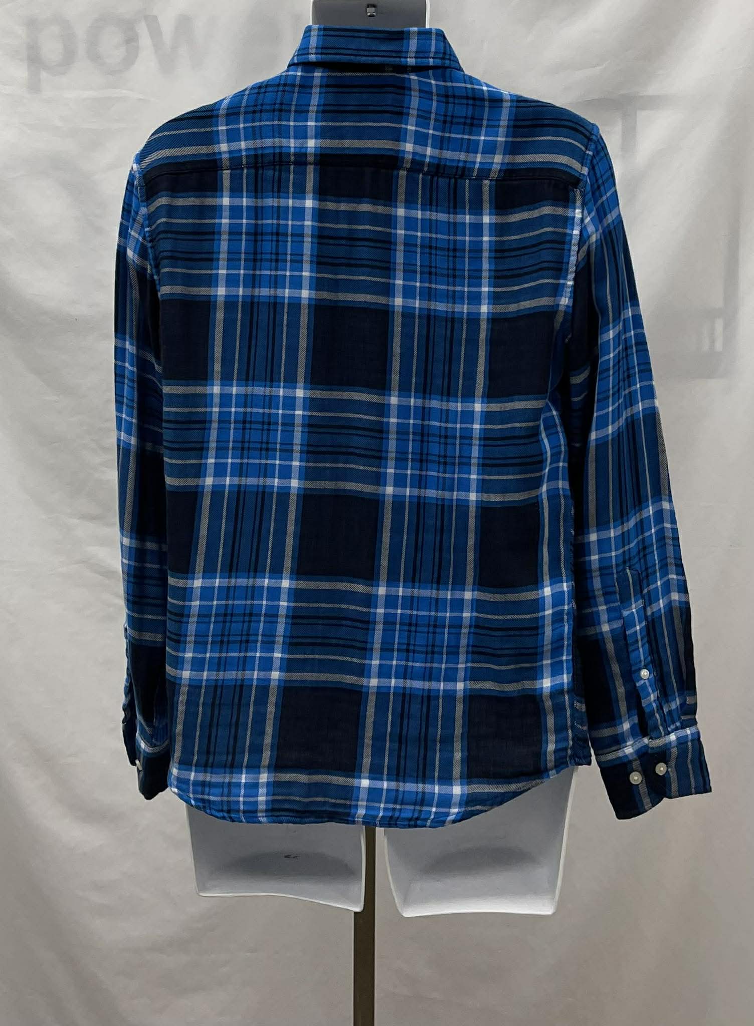 Details: Women's light blue, sky blue and navu blue with white plaid Banana Republic long sleeve blouse. Original tag still attached.