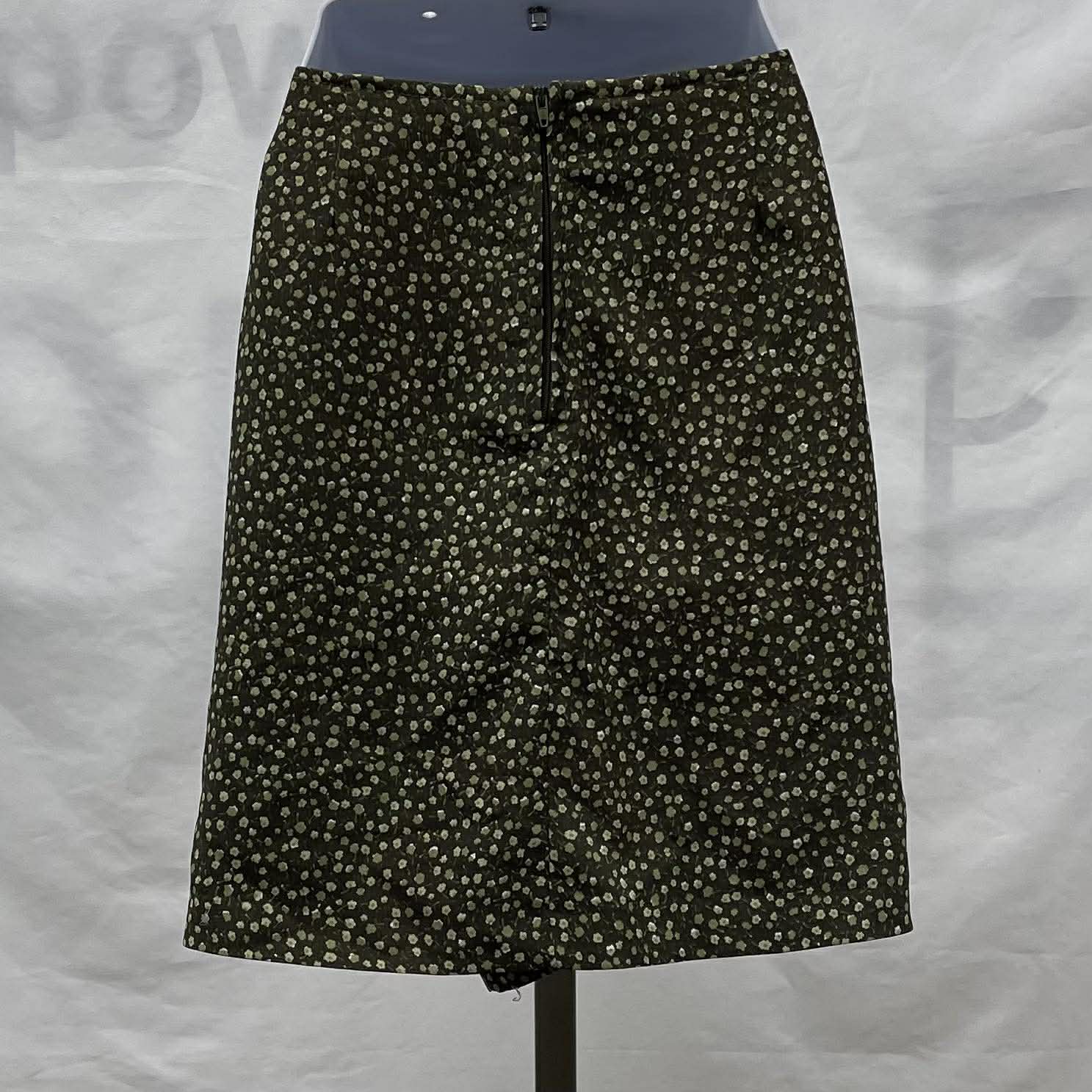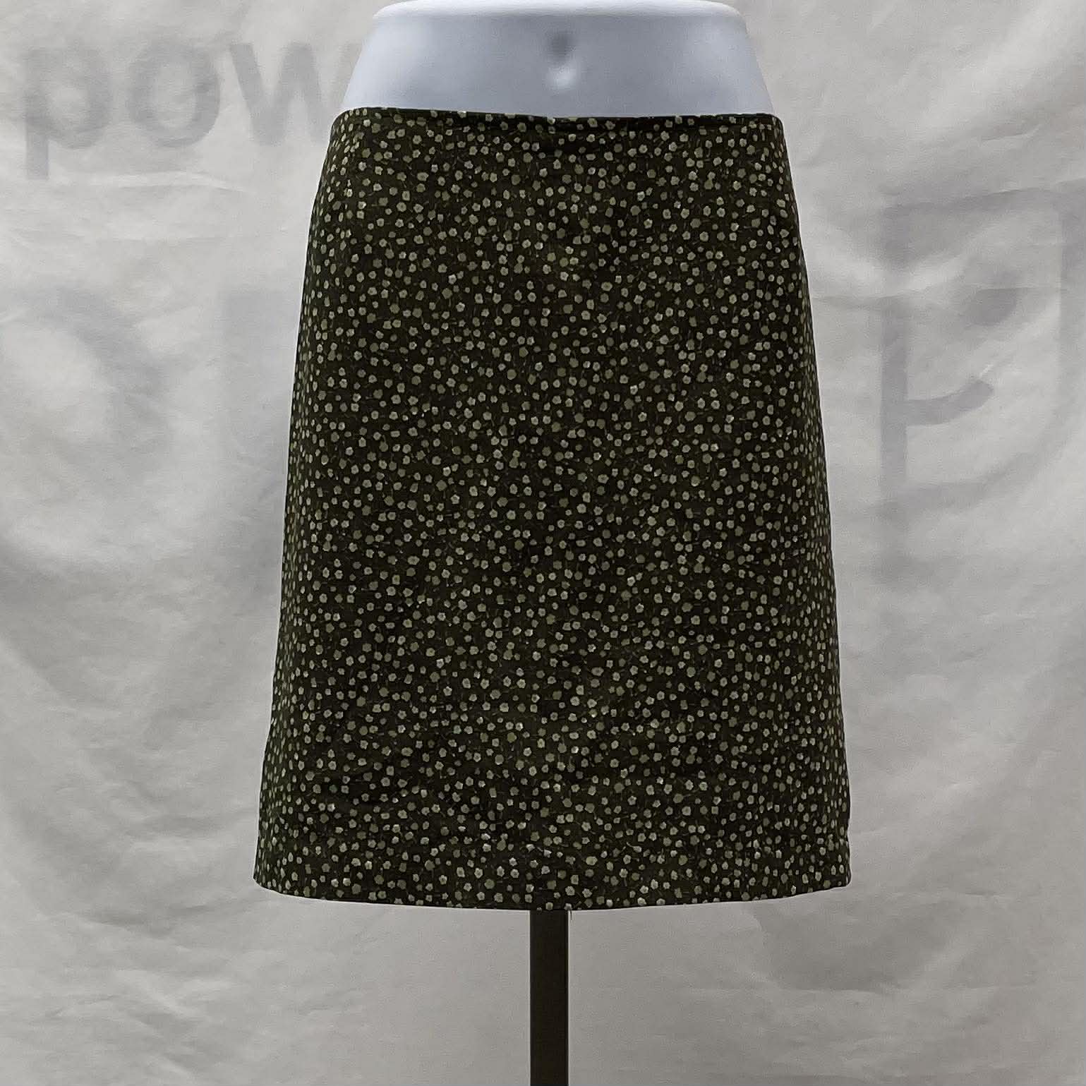 Details: Women's army green with light green floral print Classique Collections skirt.