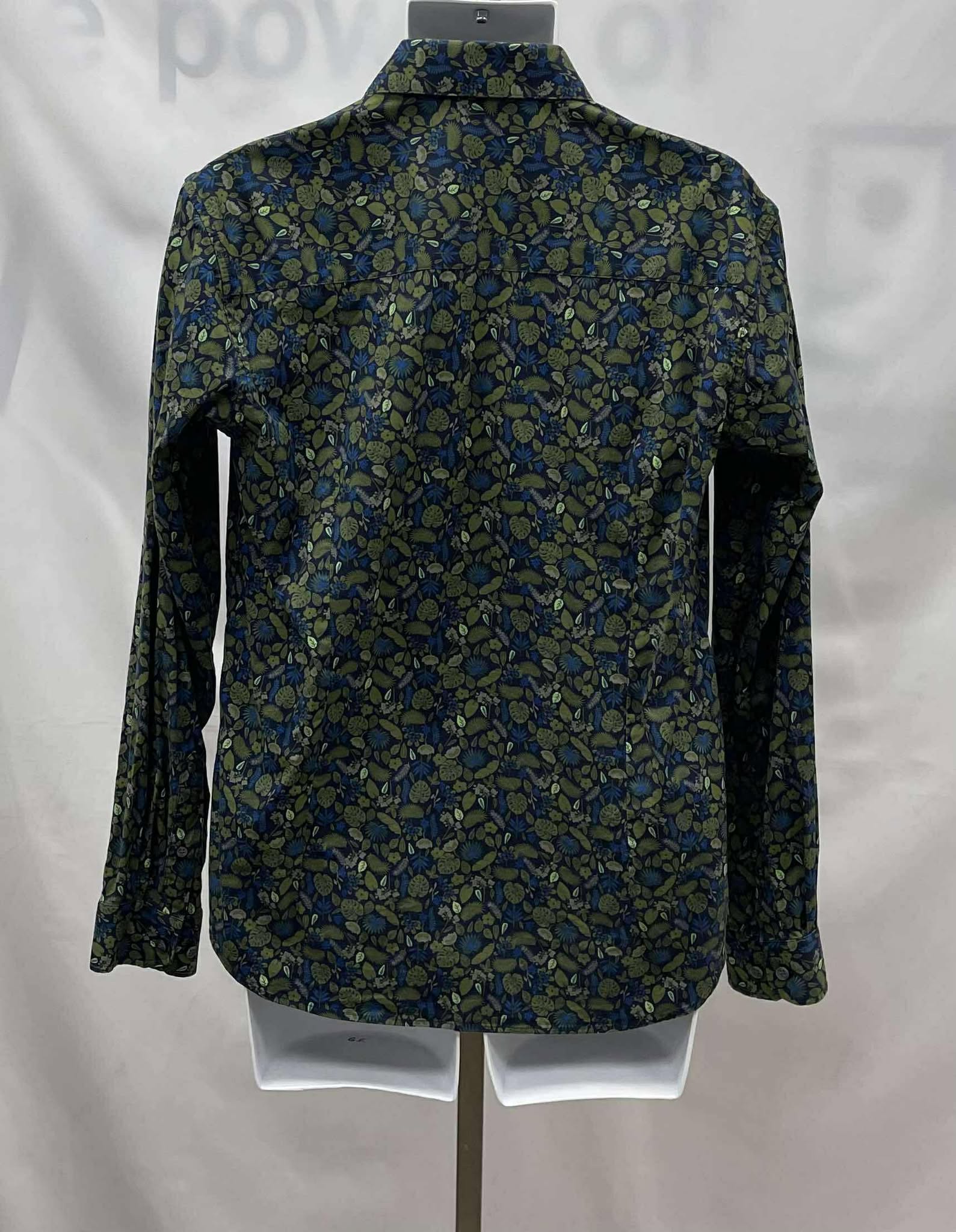Details: Men's blue and green pattered (leaves) Grafton long sleeve button up shirt