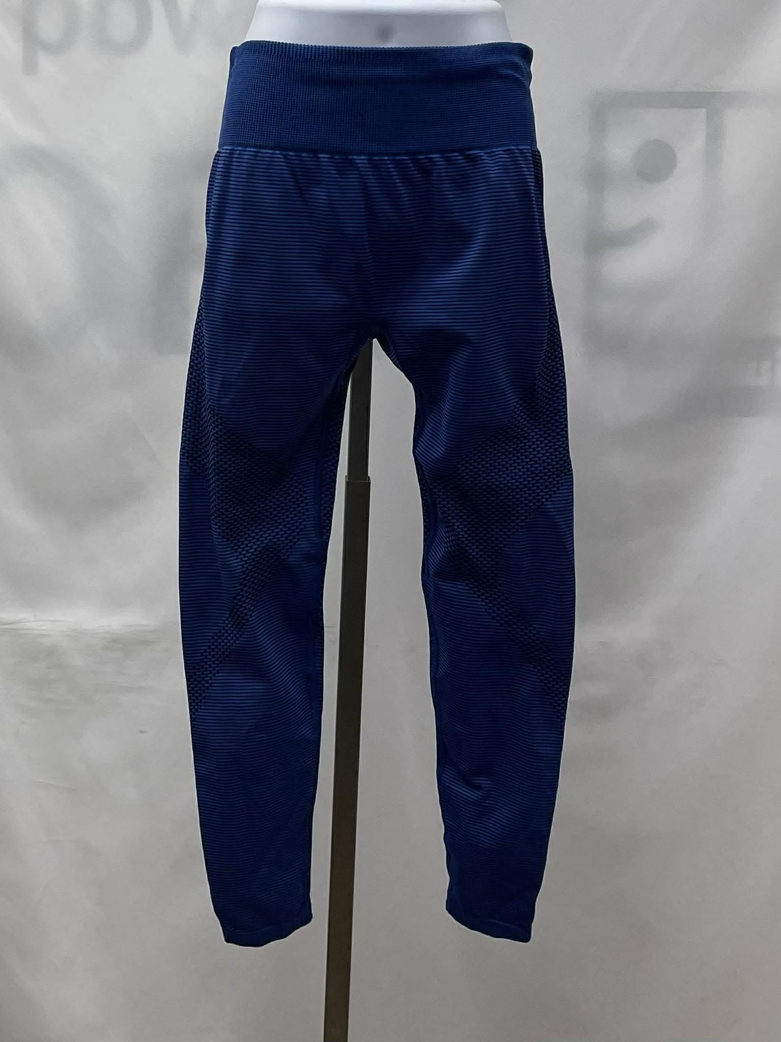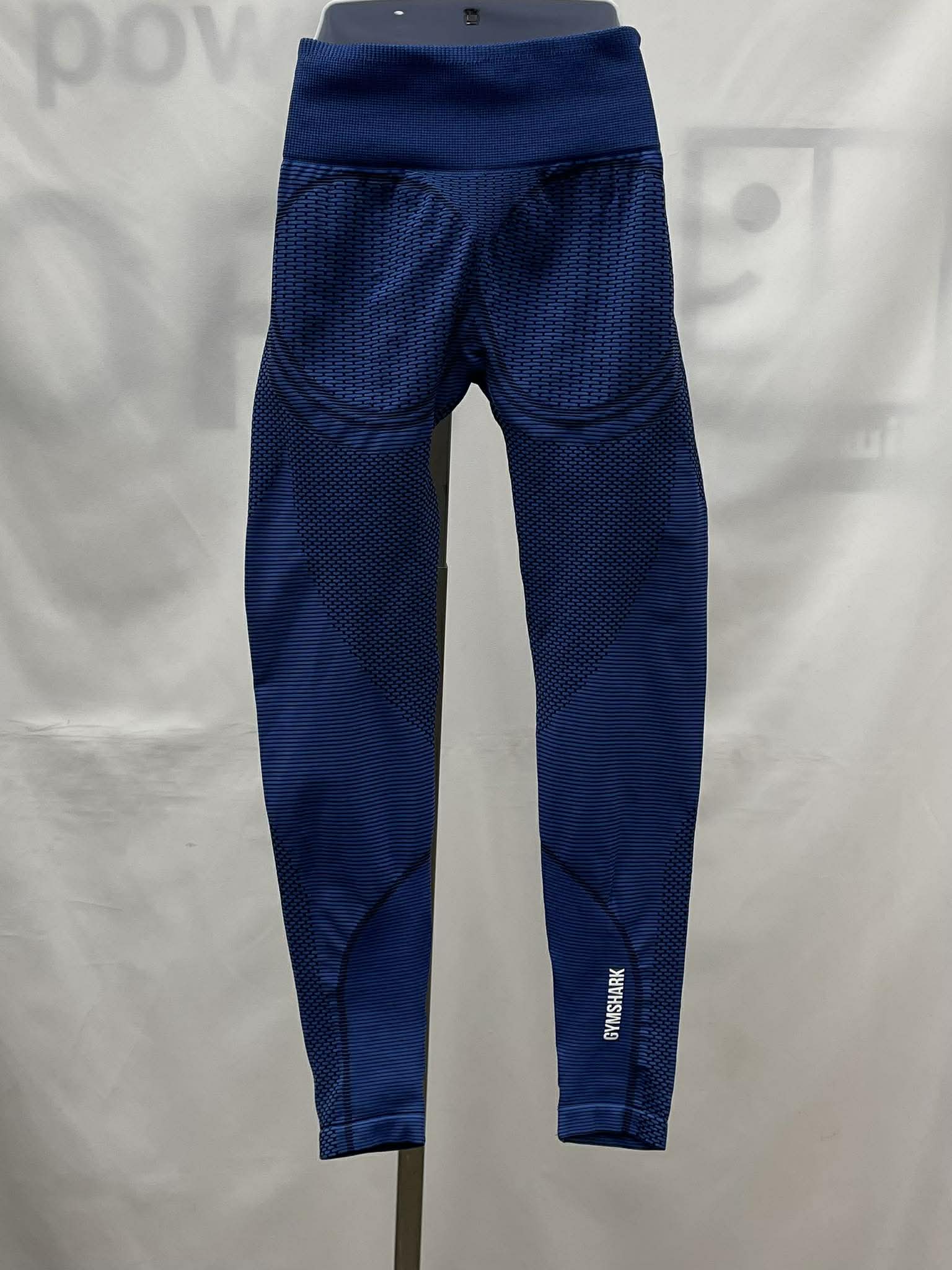 Details: Women's cobalt blue with black textured pattern, Gymshark leggings.