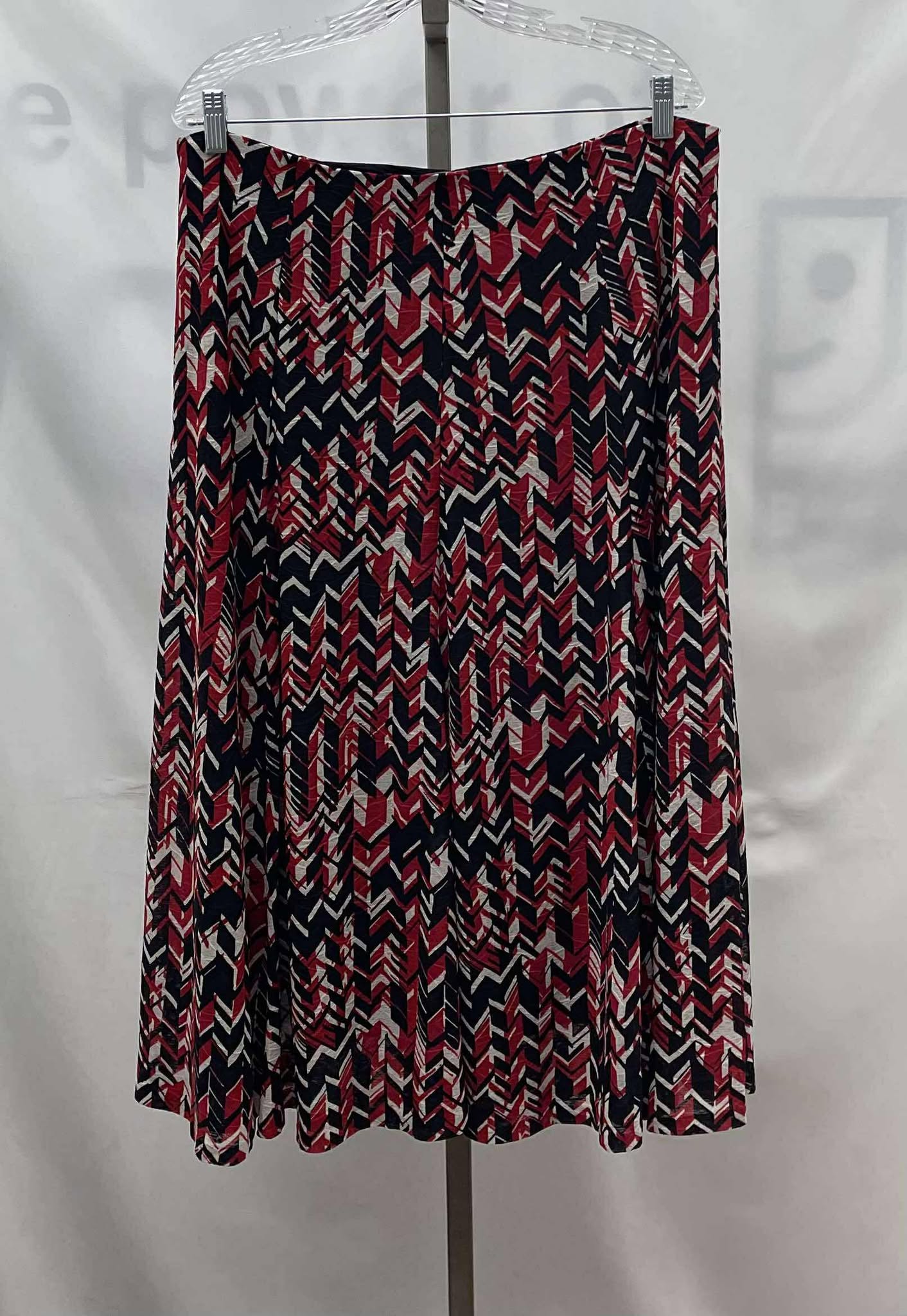 Details: Women's off white, black and red patterned Jones New York skirt.