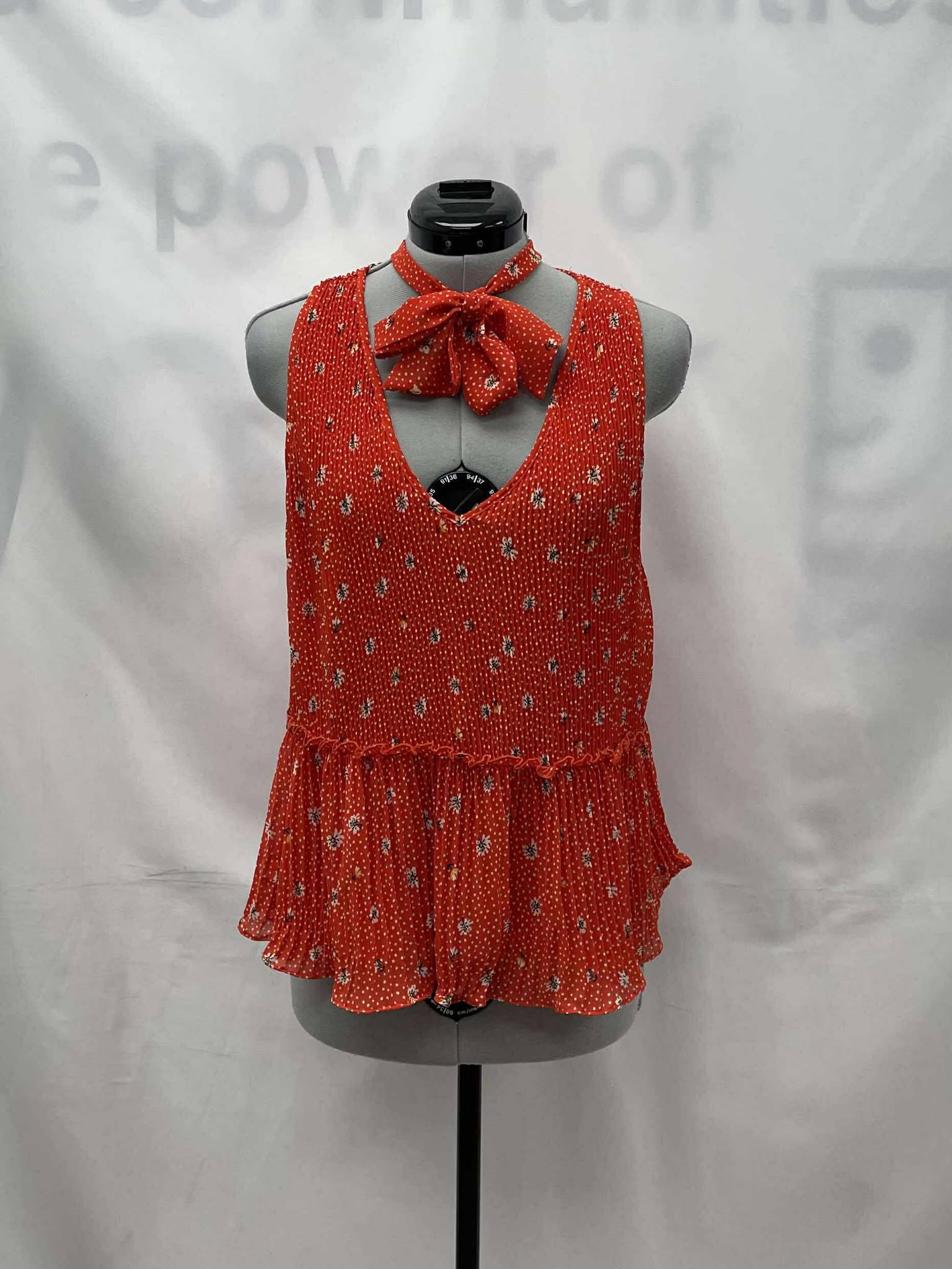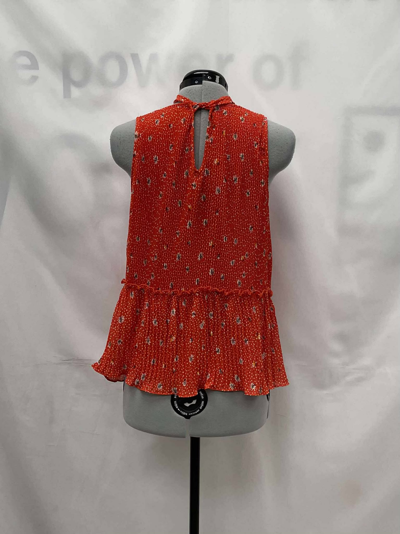 Details: Women's orange with floral print, sleeveless Zara top.