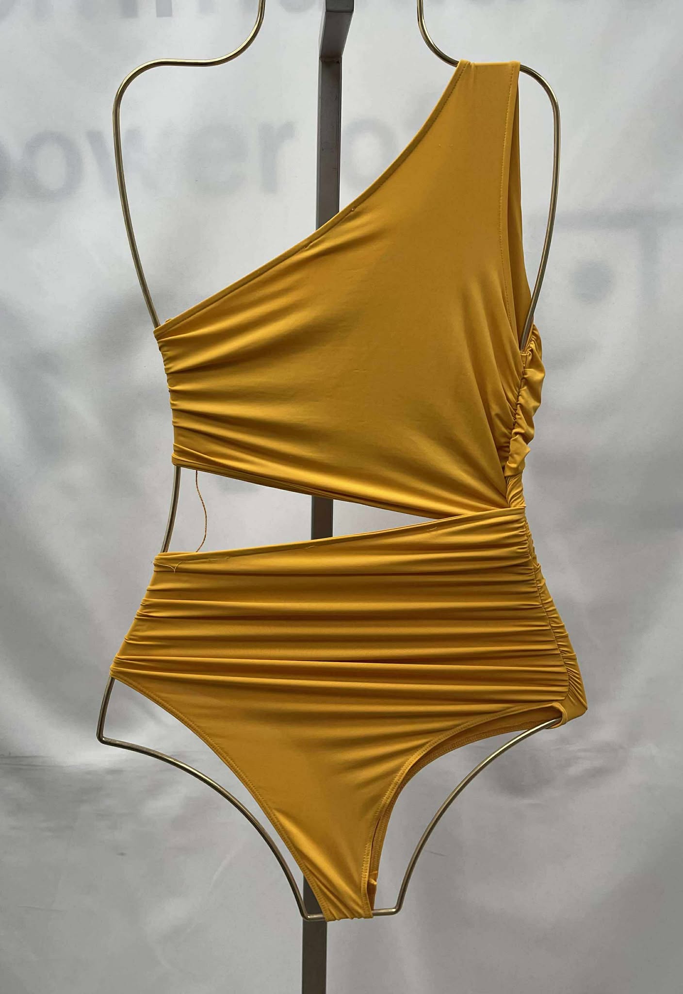 Details: Women's yellow, cropped, single shoulder, one piece Zara body suit.